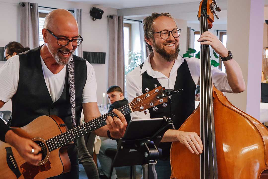 Sanfte Klänge beim Sektempfang, die Eure Gäste willkommen heißen ohne aufdringlich zu sein. Dinnermusik, die das Essen zu einem Genuss für alle Sinne macht. Lockere Stimmung von Anfang an, die zum Lachen, Plaudern oder auch Mitsingen einlädt. Auch beim Brauttanz begleiten wir Euch auf Wunsch gerne live und sorgen damit für echte Gänsehautmomente.
